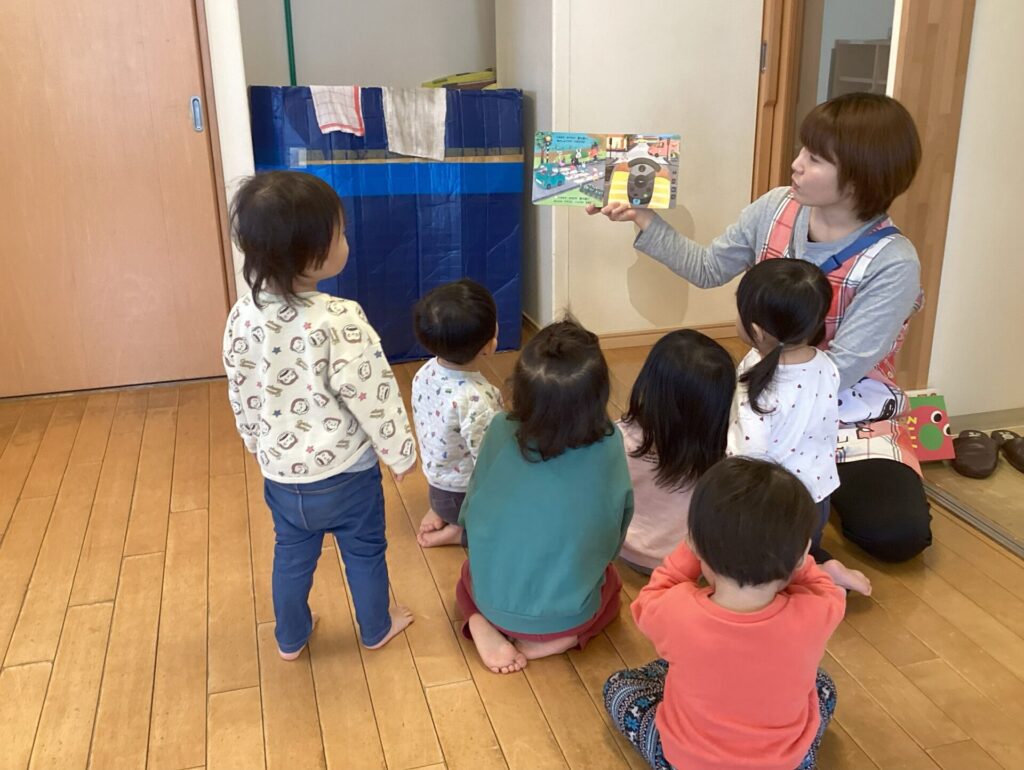 最初にクリスマスについての紙芝居を見て、期待感が増す子どもたち…!